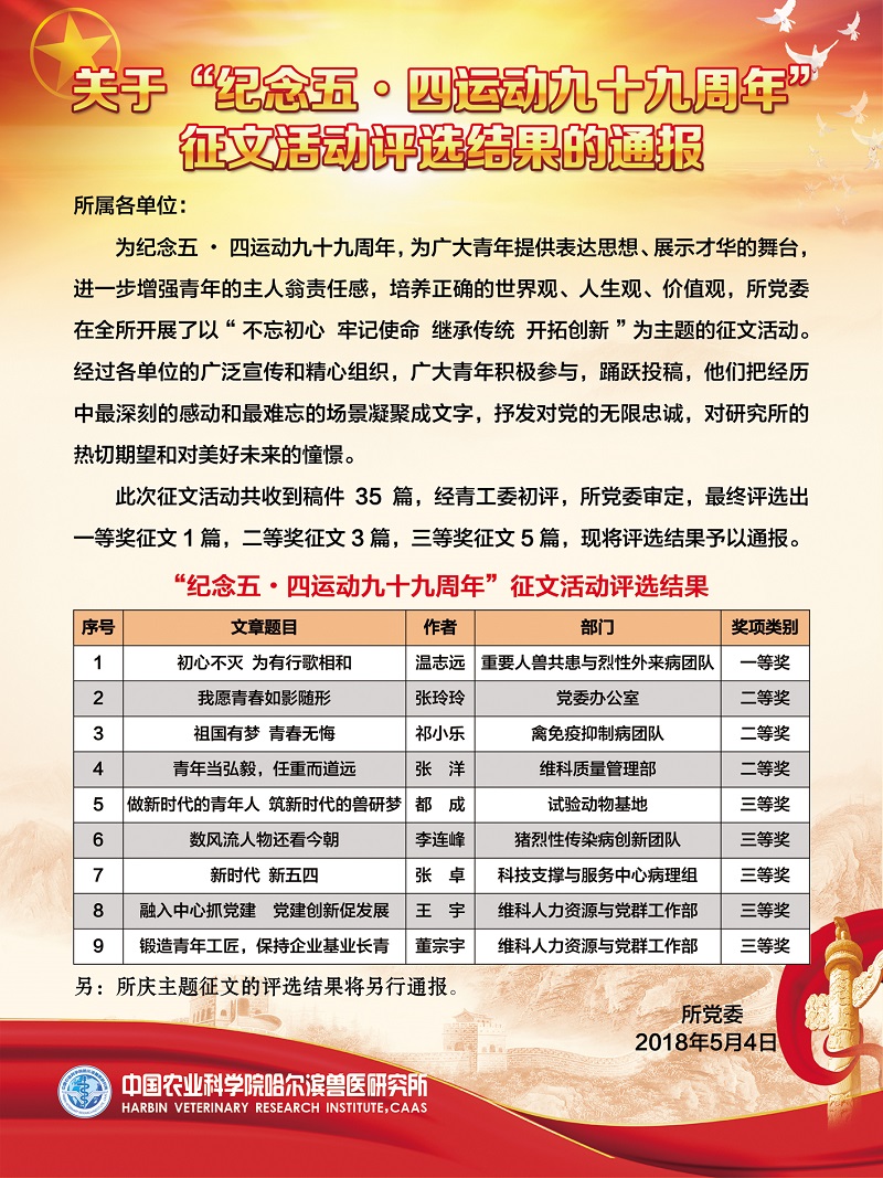 關于“紀念五?四運動九十九周年”征文活動評選結(jié)果的通報