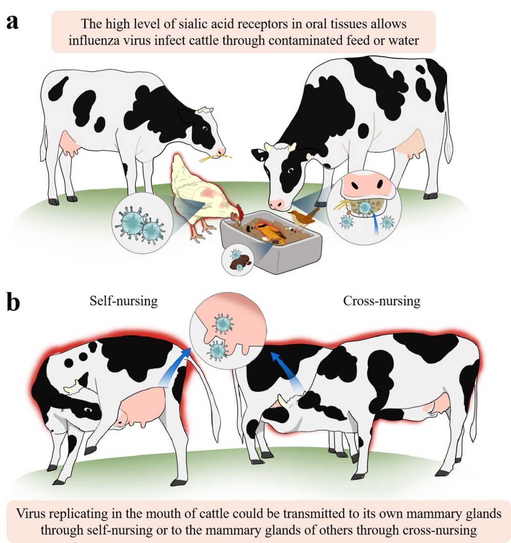 Chinese scientists have found out how the H5N1 virus initially invades the mammary glands of dairy cattle and may have triggered the outbreak of H5N1 avian influenza across over 1,000 dairy farms in the United States,