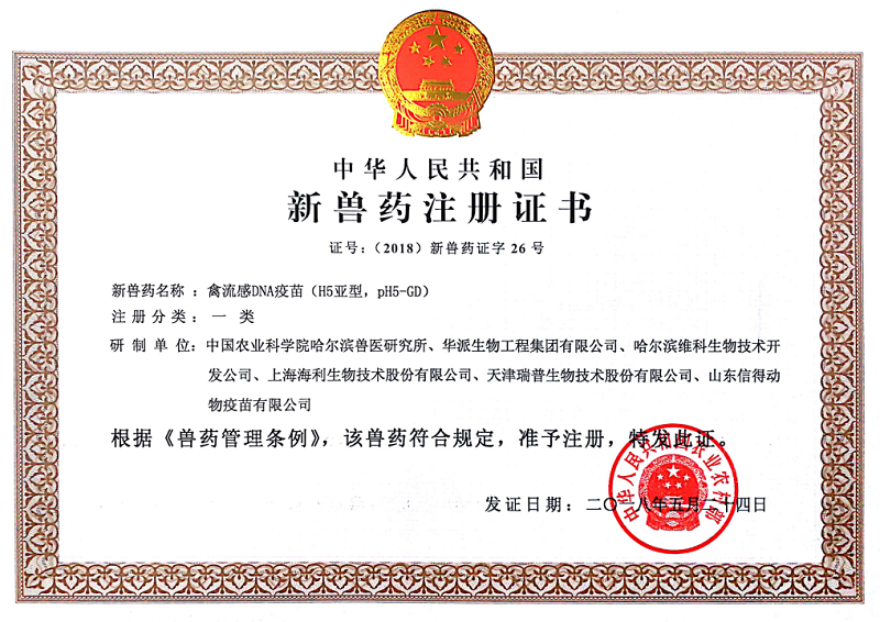 5月29日,中國(guó)農(nóng)業(yè)科學(xué)院哈爾濱獸醫(yī)研究所研制的用于預(yù)防H5亞型禽流感的DNA疫苗,獲得國(guó)家一類新獸藥證書,這是全球獲得批準(zhǔn)的首個(gè)禽病DNA疫苗產(chǎn)品,也是哈獸研動(dòng)物流感團(tuán)隊(duì)繼成功研制出重組禽流感病毒滅活疫苗和禽流感、新城疫重組二聯(lián)活疫苗后的又一項(xiàng)創(chuàng)新成果。