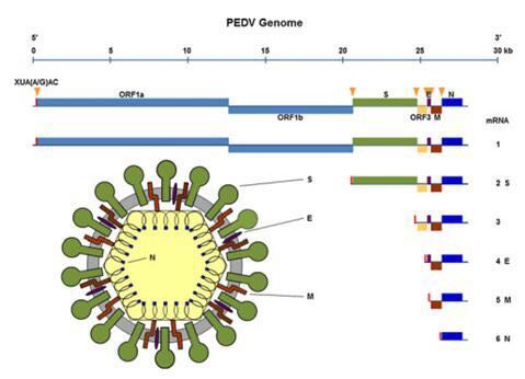 豬流行性腹瀉是由豬流行性腹瀉病毒引起的,可導(dǎo)致豬只嘔吐、水樣腹瀉,且哺乳仔豬高死亡率的一種病毒性傳染病,給養(yǎng)豬業(yè)造成了重大經(jīng)濟(jì)損失。因此,尋找廣譜抗病毒制劑是應(yīng)對病毒不斷變異新挑戰(zhàn)的重要策略。