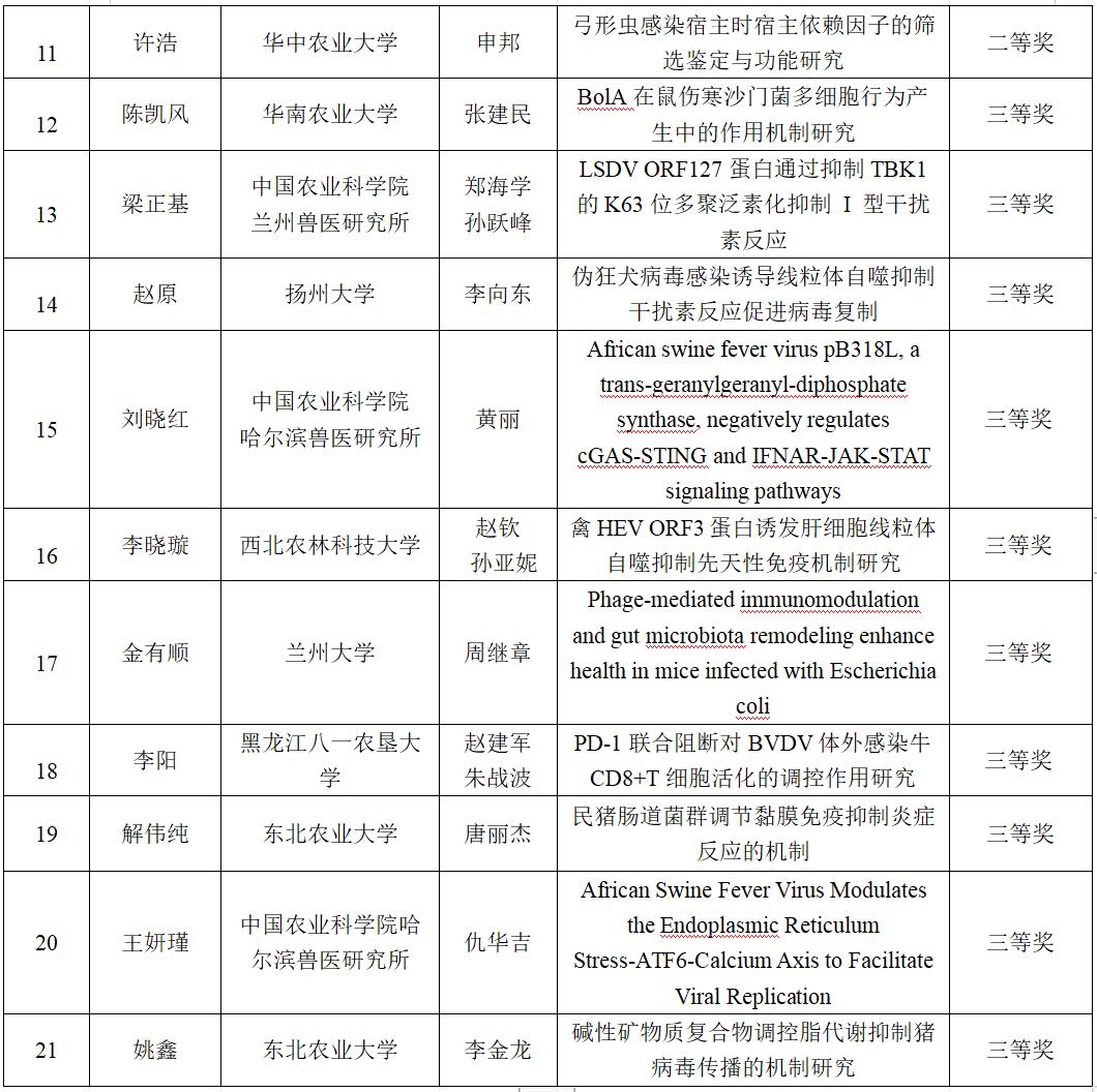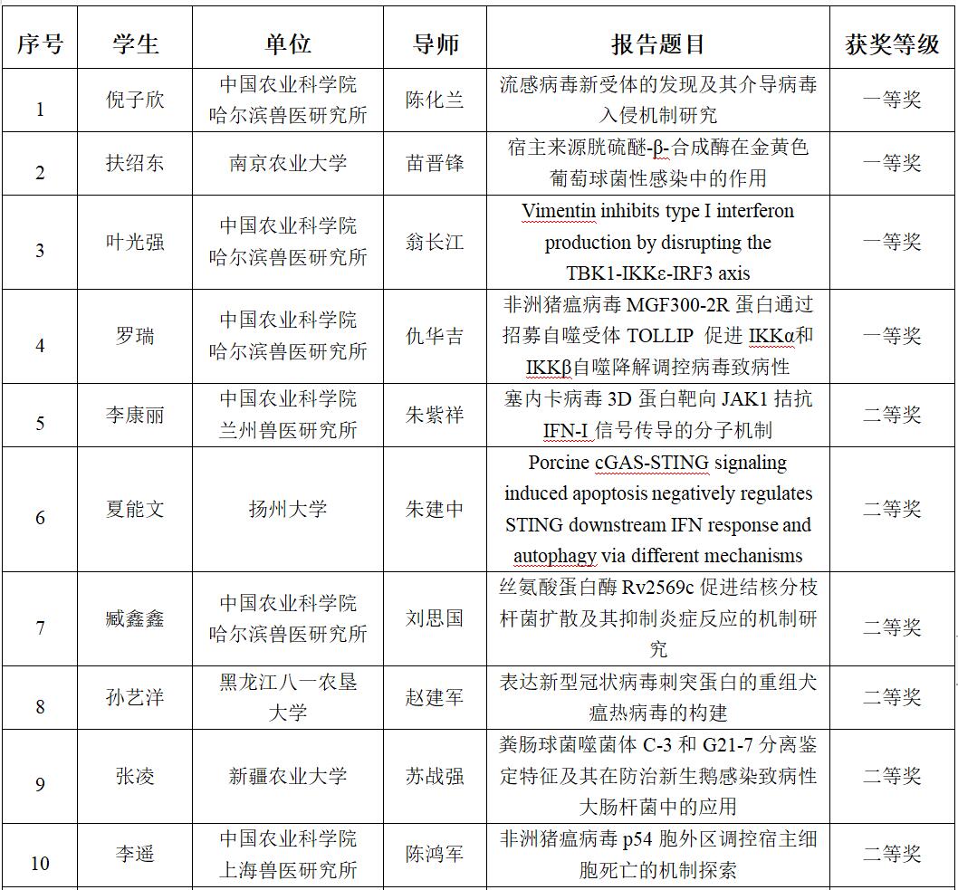 第二屆獸醫(yī)學(xué)博士峰會(huì)學(xué)術(shù)報(bào)告獲獎(jiǎng)名單