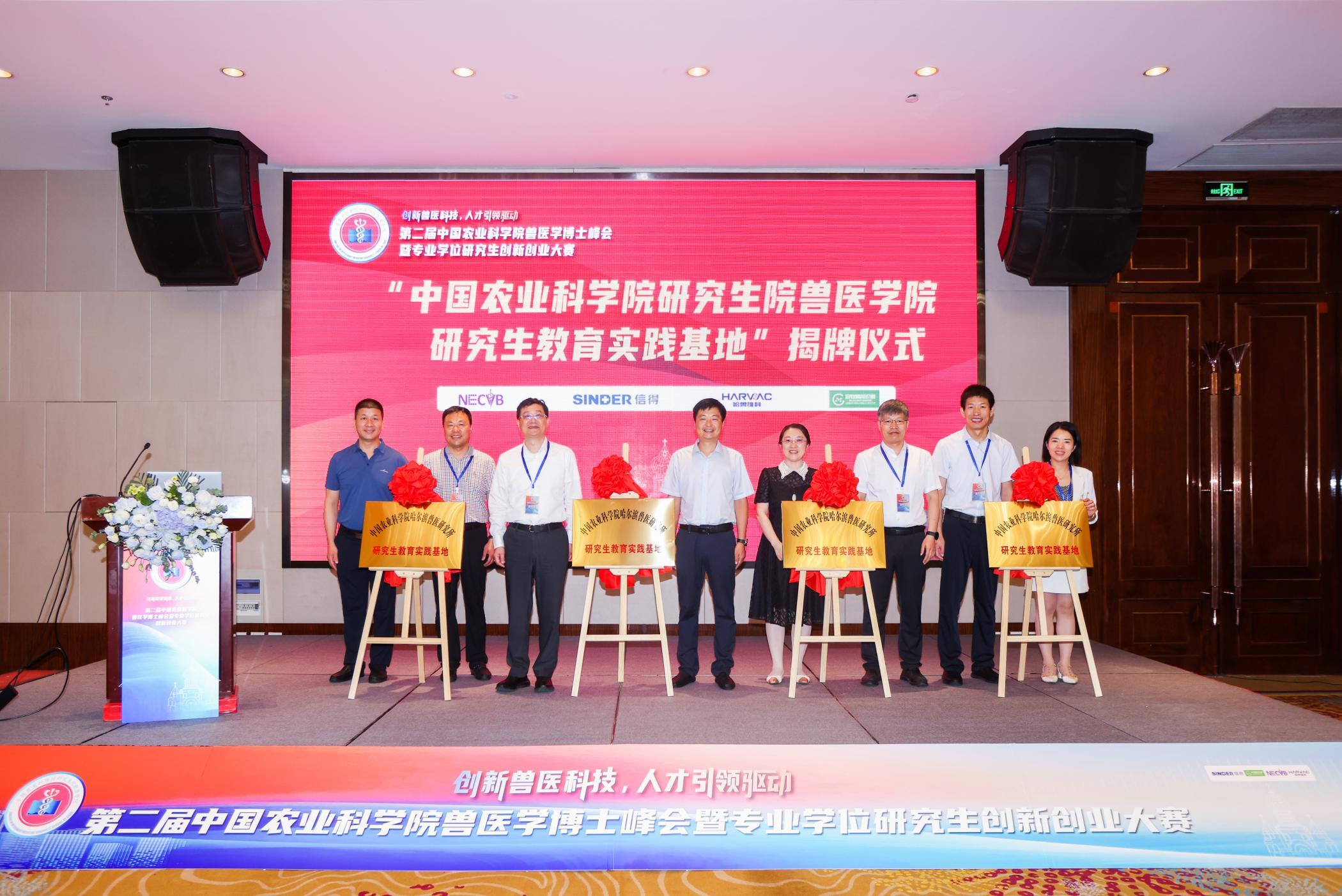 步志高、楊建玲、李呈軍、劉益民和王云峰、曾顯營(yíng)、楊忠蘋、宋慶慶共同為國(guó)生生物、哈獸維科、冠牧精準(zhǔn)診斷與信得科技作為中國(guó)農(nóng)科院研究生院獸醫(yī)學(xué)院的研究生實(shí)踐教育基地進(jìn)行揭牌,共同期待未來的合作越來越好。