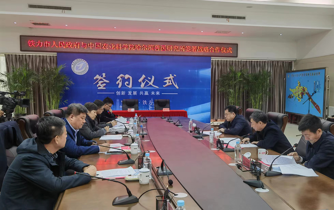 3月24日,中國農(nóng)業(yè)科學(xué)院哈爾濱獸醫(yī)研究所與黑龍江省鐵力市人民政府簽署戰(zhàn)略合作協(xié)議,雙方將從動物疫病防控、疫情監(jiān)測、技術(shù)服務(wù)和人才培養(yǎng)等方面建立戰(zhàn)略合作關(guān)系,實現(xiàn)資源共享、共同發(fā)展的目的。鐵力市委書記陳巖,市委常委、統(tǒng)戰(zhàn)部長郝立國,副市長王卿江,研究所黨委副書記夏長友、動衛(wèi)中心主任孫建宏、豬病防控創(chuàng)新團隊首席田志軍、哈獸維科研發(fā)總監(jiān)劉景利等參加活動。