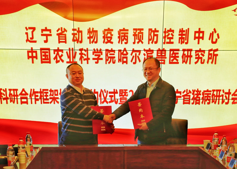 2018年3月15-16日,我所馮力副所長、仇華吉研究員、田志軍研究員赴遼寧丹東,參加由遼寧省動物疫病預防控制中心舉辦的“科研合作框架協(xié)議簽約儀式暨2018年遼寧省豬病研討會”。