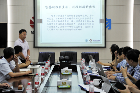 2018年7月19日,在中國(guó)科協(xié)“一帶一路”國(guó)際科技組織合作平臺(tái)建設(shè)項(xiàng)目的支持下,由中國(guó)免疫學(xué)會(huì)、中國(guó)農(nóng)業(yè)科學(xué)院哈爾濱獸醫(yī)研究所(以下簡(jiǎn)稱“哈獸研”)主辦,哈爾濱維科生物技術(shù)開發(fā)公司(以下簡(jiǎn)稱“哈獸維科”)協(xié)辦的“中國(guó)科協(xié)“一帶一路”國(guó)際科技組織合作平臺(tái)建設(shè)項(xiàng)目暨哈獸維科獸藥生物制品研討會(huì)”,在黑龍江哈爾濱順利召開。會(huì)議邀請(qǐng)臺(tái)灣嘉徽管顧公司執(zhí)行董事花宇誠(chéng)、臺(tái)灣國(guó)票證券自營(yíng)部協(xié)理鄭智文等一行9人,哈獸維科董事長(zhǎng)付朝陽(yáng)、總經(jīng)理馮建民等以及印尼帝斯公司監(jiān)事吳濱濱、常務(wù)副總經(jīng)理侯仲杰參加了會(huì)議。