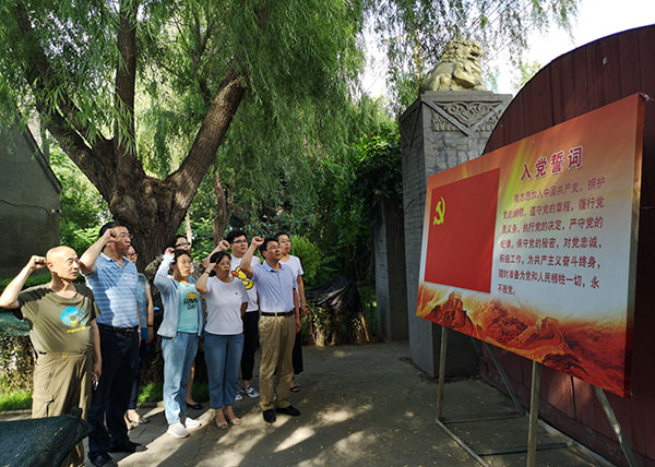 參觀結(jié)束后,全體黨員在紀念館前重溫入黨誓詞,再一次宣誓牢記黨的使命,做一名合格黨員。(文/王萍萍 攝影/喬祖健)