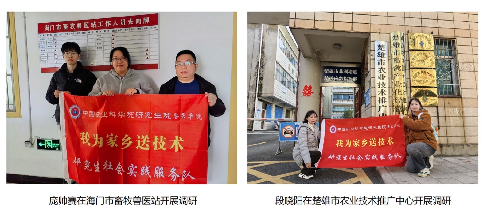 寒假期間,近200名研究生分為51個(gè)小分隊(duì),在全國(guó)26個(gè)省區(qū)深入調(diào)研、開展活動(dòng)。同學(xué)們或聯(lián)合或分散,訪村入戶、進(jìn)場(chǎng)入舍,圍繞主題、開展調(diào)研,對(duì)發(fā)現(xiàn)的問(wèn)題提出針對(duì)性的解決措施,并在返校后保持聯(lián)系、持續(xù)跟進(jìn),為鄉(xiāng)村振興提供農(nóng)科支撐。吉爾叁也同學(xué)在四川涼山州布托縣做基層獸醫(yī)、為患病馬牛手術(shù)治療;龐帥賽、段曉陽(yáng)同學(xué)歷時(shí)29天,對(duì)江蘇南通和云南楚雄20個(gè)單位進(jìn)行調(diào)研,撰寫調(diào)研日記,提交“春歸牧曲:2531養(yǎng)殖調(diào)研”報(bào)告;姬明鑫小組調(diào)研吉林左家個(gè)體養(yǎng)貂情況,并在導(dǎo)師的指導(dǎo)下幫助解決發(fā)生的疫情;劉義杰小組在河北調(diào)研規(guī)?;i場(chǎng)疾病情況,在導(dǎo)師的指導(dǎo)下對(duì)豬藍(lán)耳病防控提出解決方案。