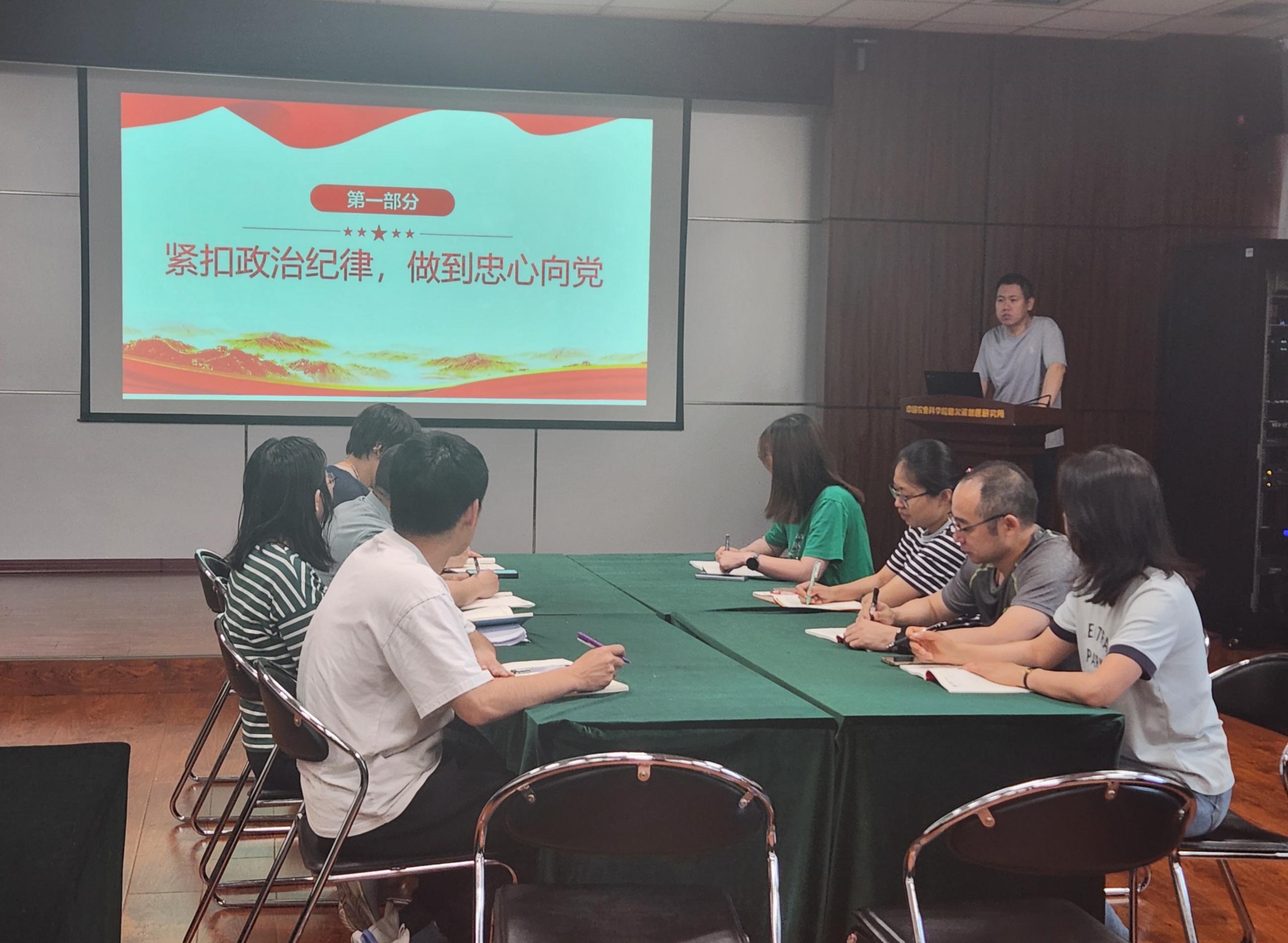 6月22日,大動物病創(chuàng)新團(tuán)隊黨支部舉行了“學(xué)習(xí)領(lǐng)會習(xí)近平總書記關(guān)于全面加強(qiáng)黨的紀(jì)律建設(shè)的重要論述”主題黨日活動。通過支部書記講黨課、觀看警示教育片和開展交流研討等形式,分享學(xué)習(xí)體會,總結(jié)工作中存在的廉政風(fēng)險點(diǎn),討論強(qiáng)化政治擔(dān)當(dāng)?shù)拇胧┡e措,引導(dǎo)支部黨員將紀(jì)律規(guī)矩內(nèi)化于心、付諸于行,進(jìn)一步提升政治定力、紀(jì)律定力、道德定力、抵腐定力。