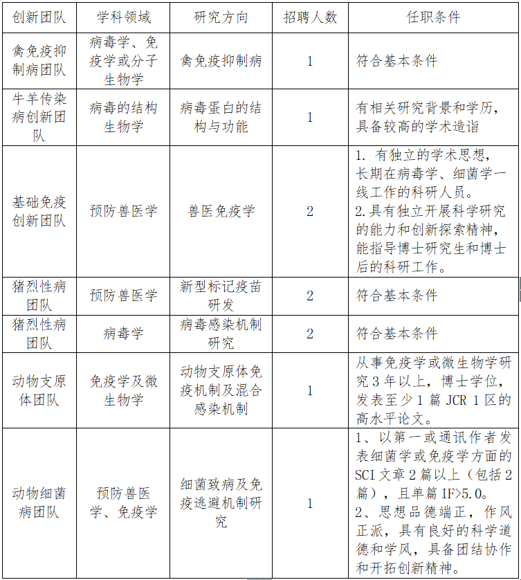 中國農業(yè)科學院哈爾濱獸醫(yī)研究所博士后招收公告