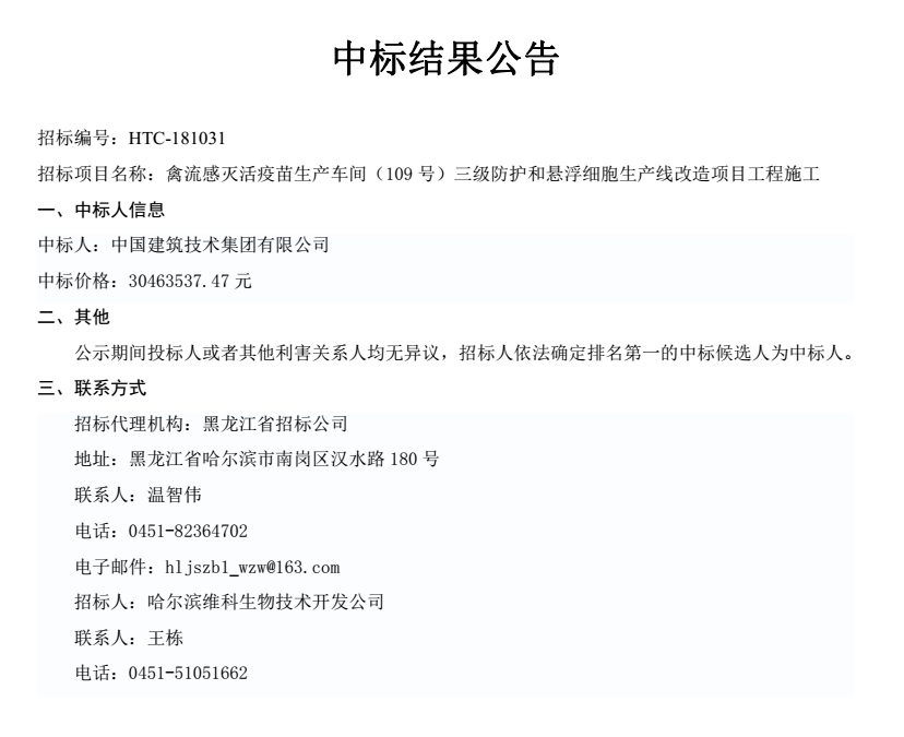 中標(biāo)結(jié)果公告