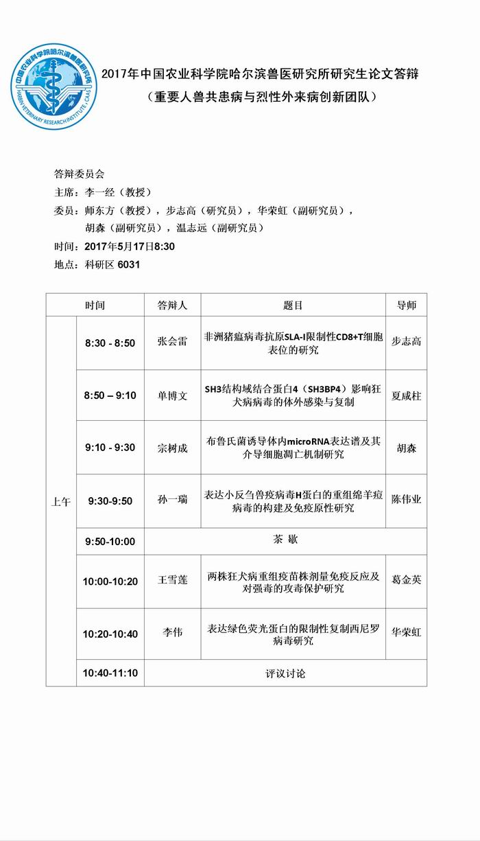 重要人獸共患病與烈性外來病團(tuán)隊(duì)研究生答辯報(bào)告會