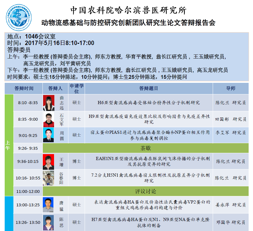 動(dòng)物流感團(tuán)隊(duì)研究生論文答辯報(bào)告會(huì)