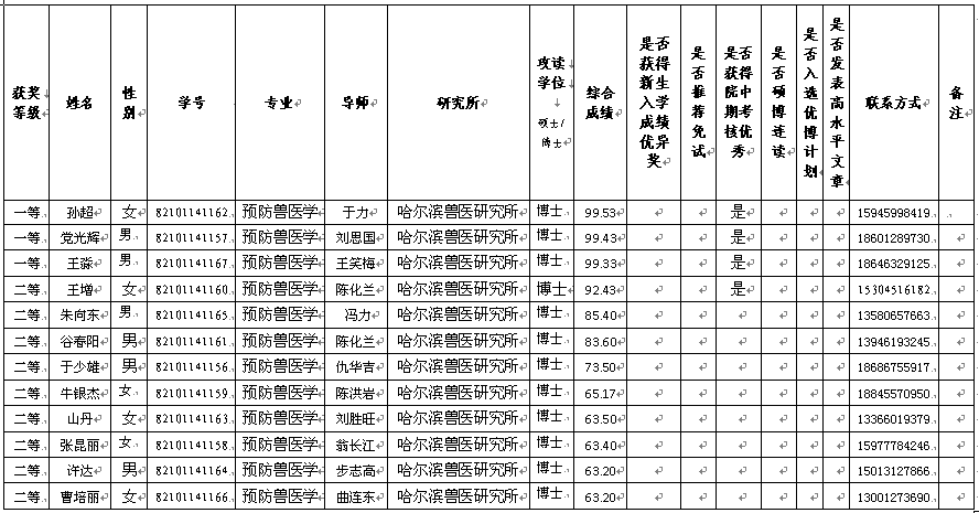 中國(guó)農(nóng)業(yè)科學(xué)院研究生學(xué)業(yè)獎(jiǎng)學(xué)金獲獎(jiǎng)學(xué)生公示(2014級(jí)博士)