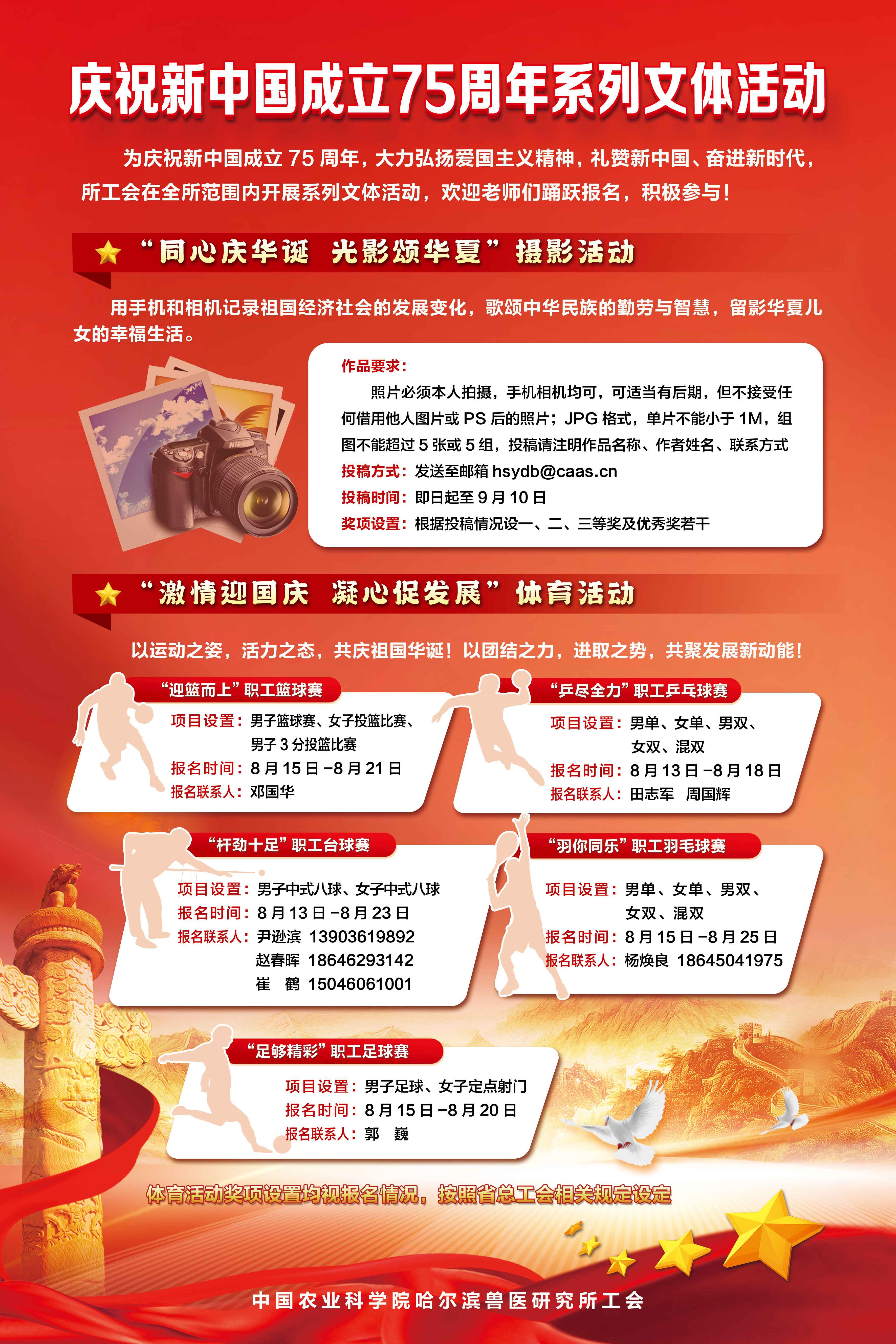 慶祝新中國成立75周年系列文體活動等您來報名