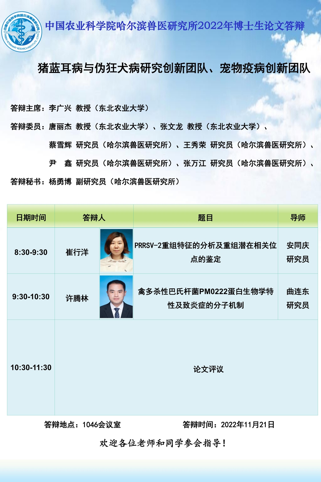 哈爾濱獸醫(yī)研究所2022級研究生論文答辯海報