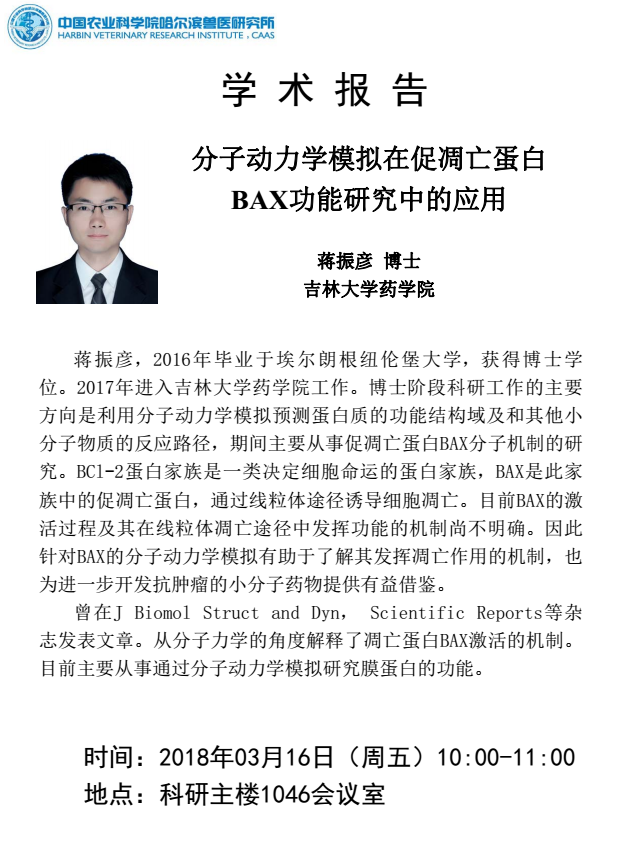蔣振彥 分子動(dòng)力學(xué)模擬在促凋亡蛋白BAX功能研究中的應(yīng)用
