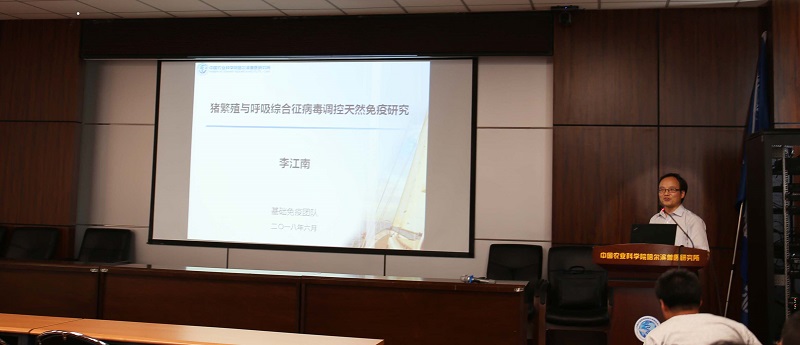 李海圍繞“Nido病毒與巨噬細(xì)胞”這一主題,介紹了不同人畜Nido病毒與宿主巨噬細(xì)胞互作的研究進(jìn)展,深入地闡述了Nido病毒的特點(diǎn)、危害以及Nido病毒共性機(jī)制研究的必要性等問(wèn)題。隨后,李海分享了所內(nèi)青年科研工作者在承擔(dān)重點(diǎn)實(shí)驗(yàn)室自主研究課題跨團(tuán)隊(duì)合作、協(xié)同攻關(guān)的重要性和科學(xué)意義。李海研究員2014年入選中國(guó)農(nóng)業(yè)科學(xué)院“青年英才計(jì)劃”A類計(jì)劃。目前,他主持2018年重點(diǎn)實(shí)驗(yàn)室自主課題“Nido病毒感染共性機(jī)制研究”項(xiàng)目。