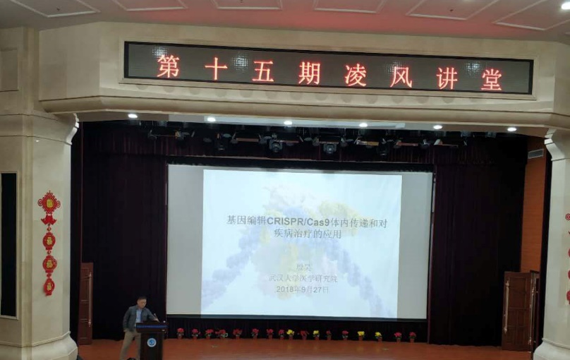 2018年9月27日,第十五期凌風(fēng)講堂開講,應(yīng)我所步志高所長的邀請,武漢大學(xué)醫(yī)學(xué)研究院殷昊教授做客第十五期“凌風(fēng)講堂”,作了題為“基因編輯CRISPR/Cas9體內(nèi)傳遞和對疾病治療的應(yīng)用”的精彩學(xué)術(shù)報告。講堂由趙東明研究員主持,近400位科研人員和研究生參加了本次講堂。
