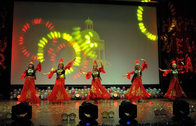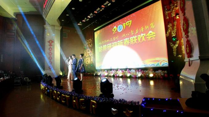 最后,公司第四黨支部王璐等演繹的新疆民族特色舞蹈《掀起你的蓋頭來》將晚會(huì)推向尾聲,所領(lǐng)導(dǎo)上臺(tái)親切慰問全體演職人員并與大家合影留念,在《歌唱祖國(guó)》鏗鏘有力的樂曲聲中歷時(shí)近兩個(gè)小時(shí)的春節(jié)聯(lián)歡會(huì)圓滿落下帷幕。本場(chǎng)聯(lián)歡會(huì)是只屬于哈獸研人辭舊迎新的盛典,更是哈獸研人攜手共進(jìn)的盛典,2017年獸研航母將揚(yáng)帆遠(yuǎn)航,譜寫“研學(xué)產(chǎn)”輝煌的新華章!