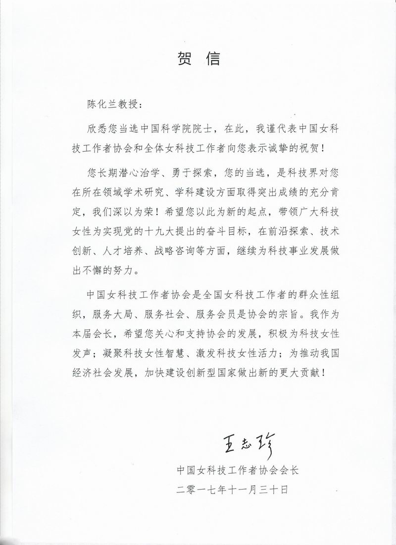 熱烈祝賀陳化蘭研究員當選中國科學院院士