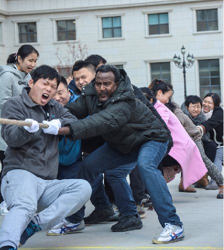 此次運(yùn)動(dòng)會(huì)共設(shè)置了集體拔河、個(gè)人跳繩、踢毽子、團(tuán)體競(jìng)技游戲和趣味接力5個(gè)項(xiàng)目。集體拔河比賽進(jìn)程中,震耳欲聾的加油聲不絕于耳,充分展現(xiàn)了全體師生團(tuán)結(jié)一心的凝聚力。個(gè)人項(xiàng)目比賽中,各個(gè)隊(duì)伍臥虎藏龍,隊(duì)員身手敏捷,在短短一分鐘的時(shí)間里充分展現(xiàn)了自身的實(shí)力。團(tuán)體競(jìng)技趣味項(xiàng)目也吸引了眾多觀眾,看似簡單的比賽凝聚著運(yùn)動(dòng)員的智慧與天賦。趣味接力,有別于傳統(tǒng)的比賽方式,融合了兩人三足、背夾球等趣味項(xiàng)目,色彩繽紛的氣球讓賽場(chǎng)靈動(dòng)了許多。經(jīng)過激烈的角逐,動(dòng)物細(xì)菌病團(tuán)隊(duì)獲得拔河比賽第一名,團(tuán)體競(jìng)技趣味項(xiàng)目的桂冠花落碩士三班,趣味接力的冠軍則被碩士五班收入囊中。