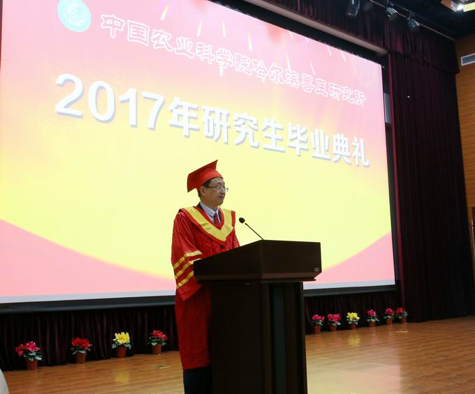6月2日,哈獸研2017年度研究生畢業(yè)典禮在科研綜合樓報告廳順利舉行。53位碩士、6位博士畢業(yè)生,所領導步志高、張逐陳、趙國輝、夏長友,廣東溫氏大華農(nóng)王阿明副總經(jīng)理、浙江詩華諾倍威張永志經(jīng)理、哈爾濱維科生物技術開發(fā)公司葉喜永副總經(jīng)理和全所師生、家長代表參加了畢業(yè)典禮。