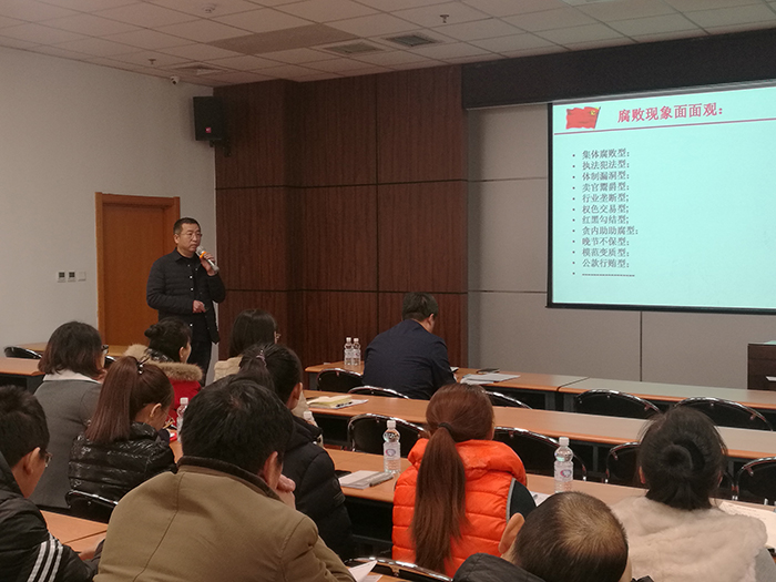 培訓(xùn)會(huì)上,張曉鵬做了題為《腐敗的成因及防范措施》的報(bào)告,他用大量的事實(shí)和案例,剖析了當(dāng)前反腐斗爭(zhēng)的總體形勢(shì)和政府采購(gòu)、科研經(jīng)費(fèi)使用、基建、招投標(biāo)等領(lǐng)域腐敗易發(fā)、多發(fā)的環(huán)節(jié),并總結(jié)歸納了“手、眼、身、法、步”廉潔從政5字語(yǔ),提醒大家注意提高自身修養(yǎng),敬畏法度、敬畏規(guī)矩,遠(yuǎn)離小圈子、遠(yuǎn)離低級(jí)趣味,提高拒腐防變的能力。
