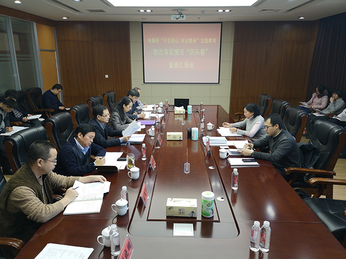 12月3日,院“不忘初心、牢記使命”主題教育“回頭看”督導(dǎo)檢查第五組組長李建萍、組員鄭釗光對我所主題教育整改落實(shí)“回頭看”工作進(jìn)行督導(dǎo)檢查。所長步志高主持匯報(bào)會,黨委書記王笑梅作自查情況匯報(bào)。黨委委員、各總支和支部書記、整改落實(shí)工作部門負(fù)責(zé)人參加會議。