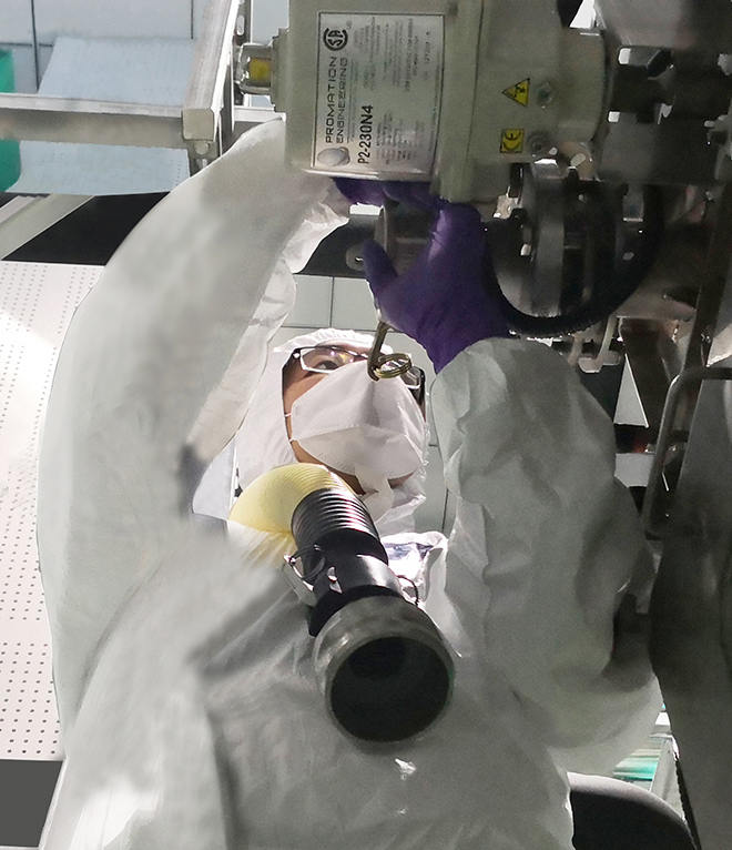 在科技攻關任務期間,呂士昆同志經(jīng)常在-500Pa的密封實驗室工作數(shù)個小時,只為找到一個小米粒大小的漏點。他進入高不足1米、面積不足3平方米的動物隔離器內(nèi)部的狹小空間檢測氣密性。實驗期間樣本傳輸時間緊迫刻不容緩。一天夜里11點,呂士昆接到緊急通知,用于傳輸樣本的渡槽在緊要關頭出現(xiàn)故障。他立即進入實驗室進行緊急維修,直至凌晨1點排除了故障,樣本傳輸完成。雖然緊張疲憊,但心中的責任感和使命感在他臉上綻放得絢爛而奪目。他是積極向黨組織靠攏的先進分子,他用使命與奮斗淬煉火紅初心,他以實際行動踐行著初心。