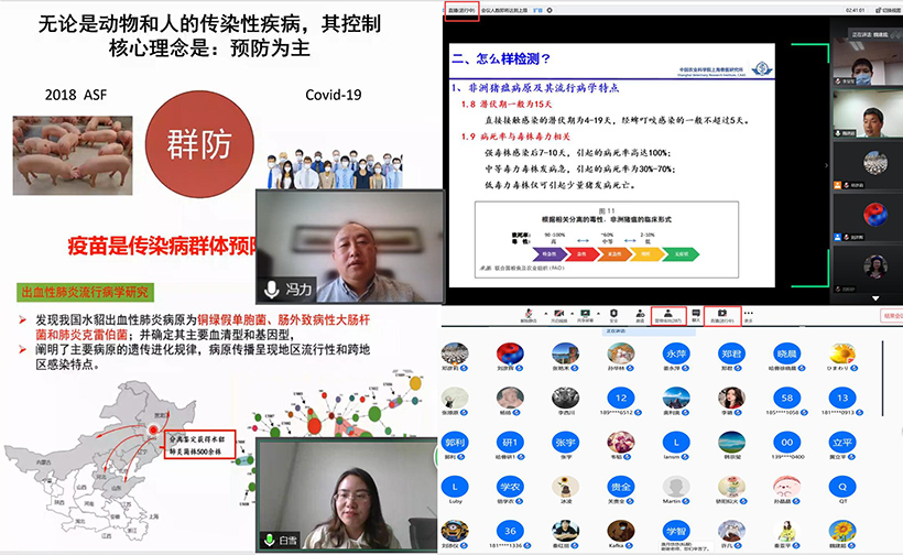 在主題報(bào)告中,中國(guó)農(nóng)業(yè)科學(xué)院哈爾濱獸醫(yī)研究所副所長(zhǎng)馮力研究員以“豬病毒性腹瀉疫苗研發(fā)現(xiàn)狀及面臨的新挑戰(zhàn)”為題,深入講解了豬病毒性腹瀉基本概況、疫苗研究歷史與現(xiàn)狀、疫苗研發(fā)面臨的挑戰(zhàn)以及未來疫苗研發(fā)的趨勢(shì)與方向,系統(tǒng)介紹了豬病毒性腹瀉病基礎(chǔ)研究和疫苗研發(fā)兩方面取得的豐碩成果,提出了豬病毒性腹瀉“五位一體”的防控策略。在隨后的交流互動(dòng)環(huán)節(jié),馮力研究員線上回答了觀眾請(qǐng)教的有關(guān)豬病毒性腹瀉疫苗研究方面的問題,相關(guān)研究人員受益匪淺。