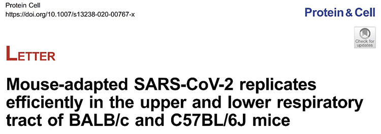2020年8月4日中國(guó)農(nóng)業(yè)科學(xué)院哈爾濱獸醫(yī)研究所步志高團(tuán)隊(duì)在Protein & Cell 在線發(fā)布“Mouse-adapted SARS-CoV-2 replicates efficiently in the upper and lower respiratory tract of BALB/c and C57BL/6J mice”的論文,報(bào)道將SARS-CoV-2在小鼠體內(nèi)快速傳代適應(yīng),使病毒具備在BALB/c 和C57BL/6J小鼠上呼吸道和下呼吸道高效復(fù)制的能力;利用該適應(yīng)病毒株建立的小鼠感染模型,證實(shí)了瑞德西韋滴鼻和肌注聯(lián)合給藥可有效阻止SARS-CoV-2在小鼠上、下呼吸道中的復(fù)制。