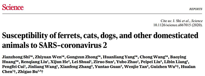 自2013年以來,Altmetric對全球每年發(fā)表論文的關注度進行綜合評估,并公布100篇最受關注的文章榜單 “Altmetric Top 100”。2020年“Altmetric Top 100”日前揭曉,中國農(nóng)業(yè)科學院哈爾濱獸醫(yī)研究所步志高、陳化蘭團隊和中國疾病預防控制中心病毒病預防控制所武桂珍團隊發(fā)表的論文“Susceptibility of ferrets, cats, dogs, and other domesticated animals to SARS-coronavirus 2” (Science, DOI:10.1126/science.abb7015)排名20,在農(nóng)業(yè)和獸醫(yī)領域排名第1。該研究發(fā)現(xiàn)貓和雪貂對新冠病毒高度易感,而犬、豬、雞和鴨對該病毒不易感。該研究成功建立了新型冠狀病毒的動物感染模型,為疾病防控以及動物管理模式提供了重要的見解。