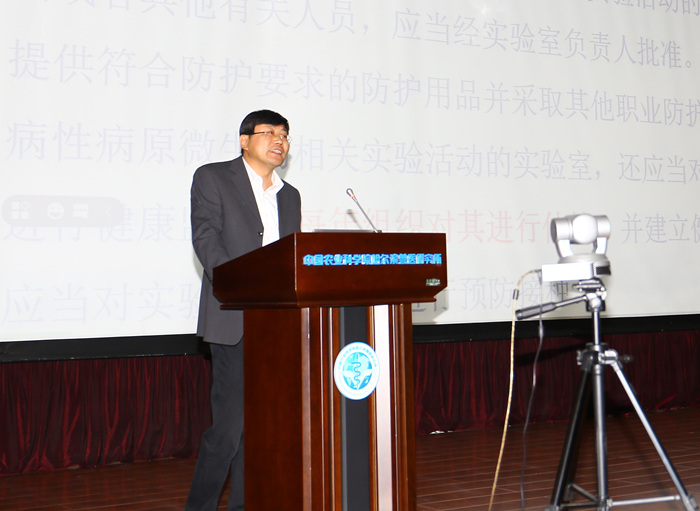 為繼續(xù)深入學(xué)習(xí)貫徹《生物安全法》,加強(qiáng)生物安全管理,增強(qiáng)生物安全領(lǐng)域的風(fēng)險(xiǎn)防控意識(shí),4月25日上午,中國農(nóng)業(yè)科學(xué)院哈爾濱獸醫(yī)研究所生物安全管理辦公室和科研管理與國際合作處組織舉辦了《生物安全法》講解、生物安全知識(shí)培訓(xùn)及測(cè)試,邀請(qǐng)國家動(dòng)物疫病防控高級(jí)別生物安全實(shí)驗(yàn)室副主任關(guān)云濤結(jié)合我所工作實(shí)際,對(duì)《生物安全法》的立法背景、法律適用性、以及與研究所科技創(chuàng)新息息相關(guān)的法律條款進(jìn)行重點(diǎn)解讀。