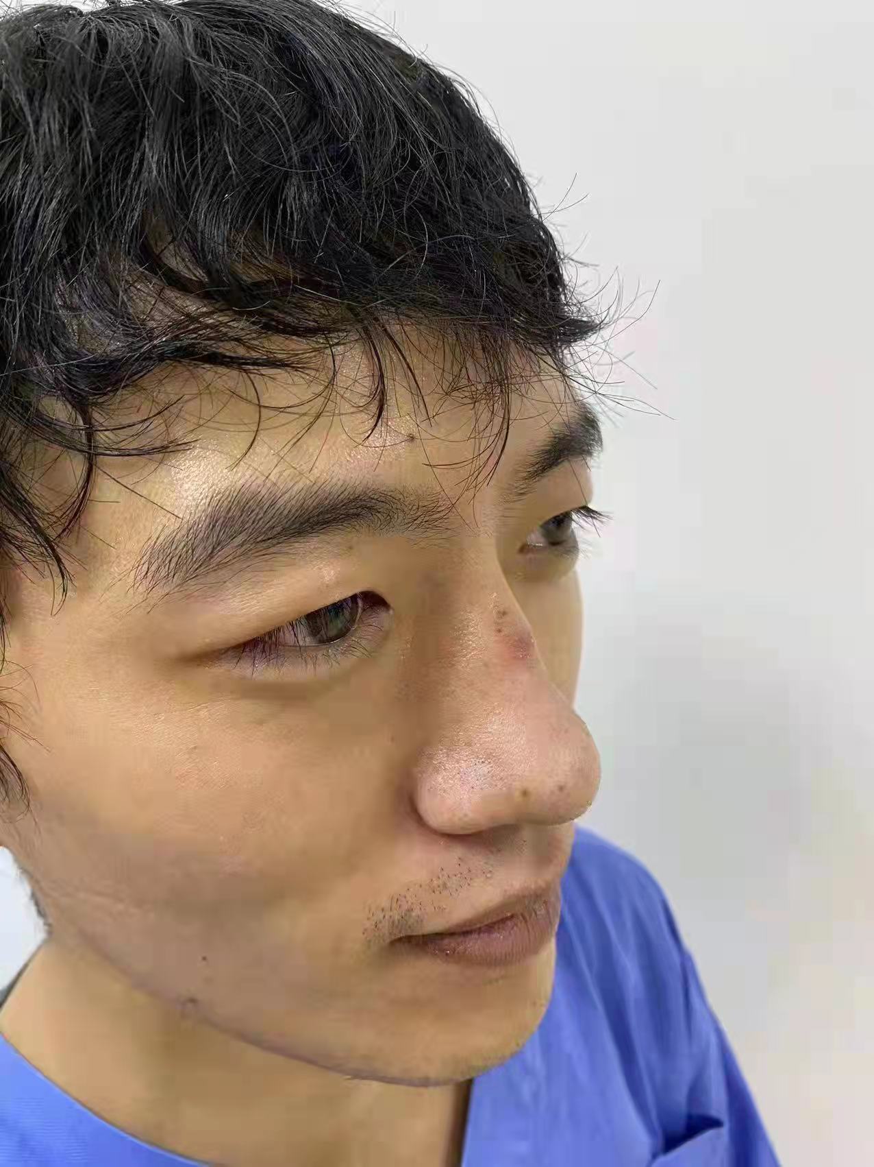 由于連續(xù)長時(shí)間工作,檢測人員孫巖的臉部被口罩勒傷