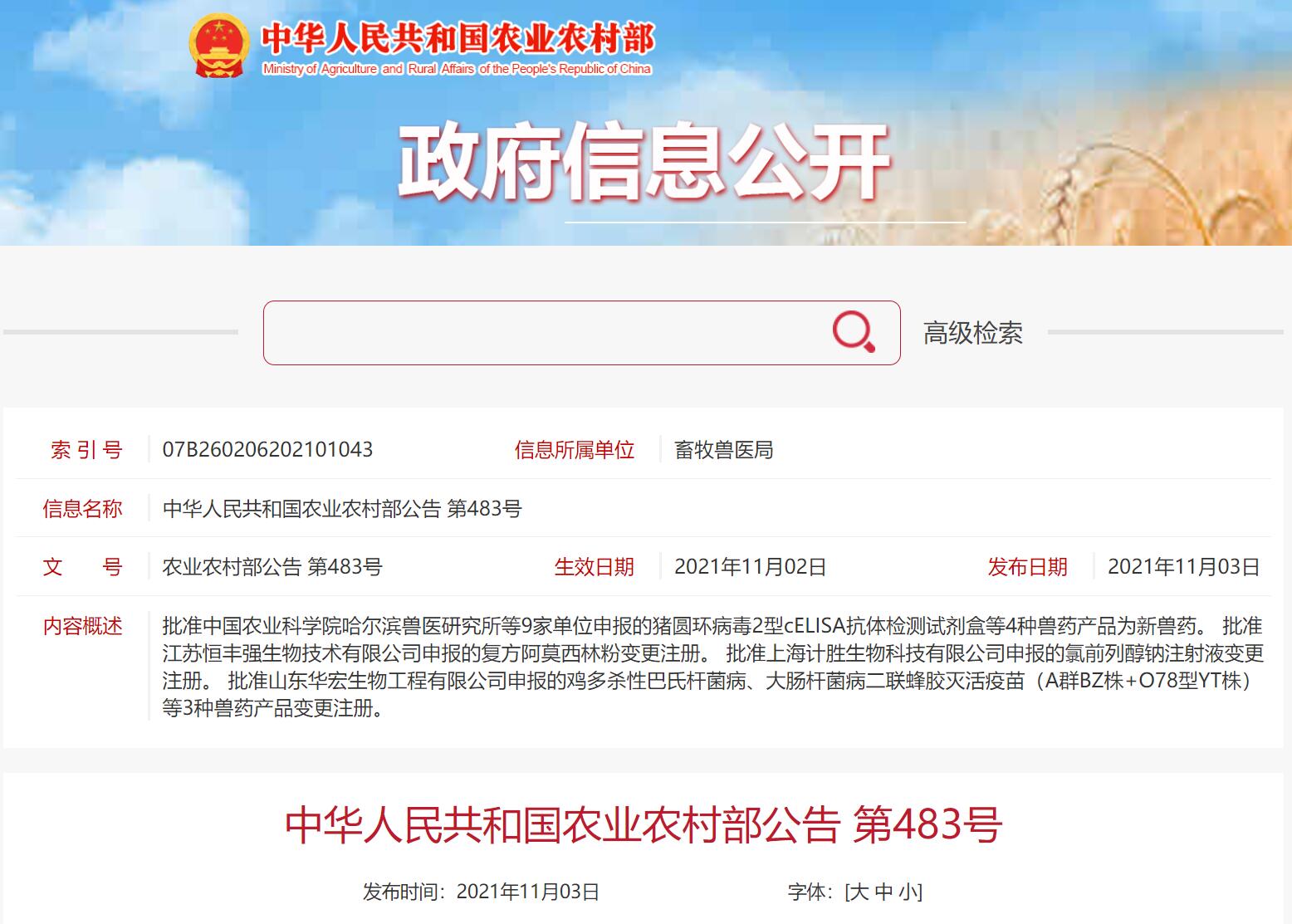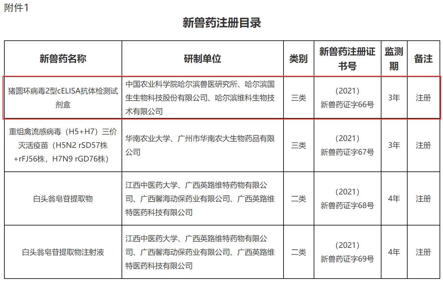 近日,據(jù)農(nóng)業(yè)農(nóng)村部發(fā)布的第483號(hào)公告獲悉,由中國農(nóng)業(yè)科學(xué)院哈爾濱獸醫(yī)研究所豬消化道傳染病創(chuàng)新團(tuán)隊(duì)研制的豬圓環(huán)病毒2型cELISA抗體檢測(cè)試劑盒,獲批三類新獸藥注冊(cè)證書。
