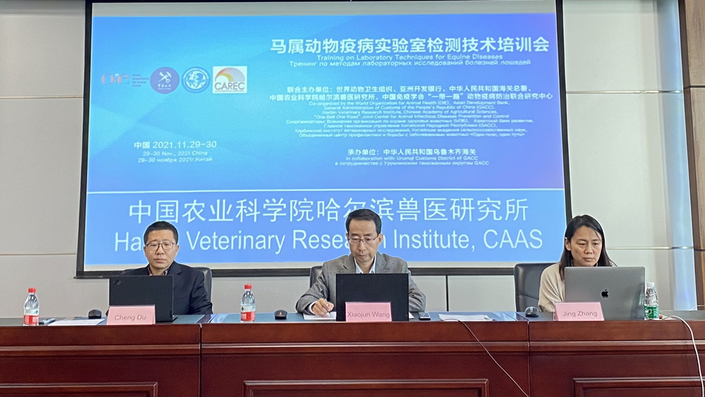 為進(jìn)一步加強(qiáng)中哈“一帶一路”聯(lián)合共建交流,11月29日至30日,“中國(guó)-哈薩克斯坦馬屬動(dòng)物疫病實(shí)驗(yàn)室檢測(cè)技術(shù)培訓(xùn)會(huì)”通過(guò)線(xiàn)上視頻會(huì)議的方式召開(kāi),在烏魯木齊和哈爾濱設(shè)立授課會(huì)場(chǎng)。會(huì)議由中國(guó)農(nóng)業(yè)科學(xué)院哈爾濱獸醫(yī)研究所、“一帶一路”動(dòng)物疫病防治聯(lián)合中心、烏魯木齊海關(guān)、世界動(dòng)物衛(wèi)生組織和亞洲開(kāi)發(fā)銀行聯(lián)合舉辦,哈薩克斯坦國(guó)家獸醫(yī)實(shí)驗(yàn)室和地方級(jí)獸醫(yī)實(shí)驗(yàn)室以及斯·賽福林哈薩克農(nóng)業(yè)技術(shù)大學(xué)派出代表參加了視頻培訓(xùn)。