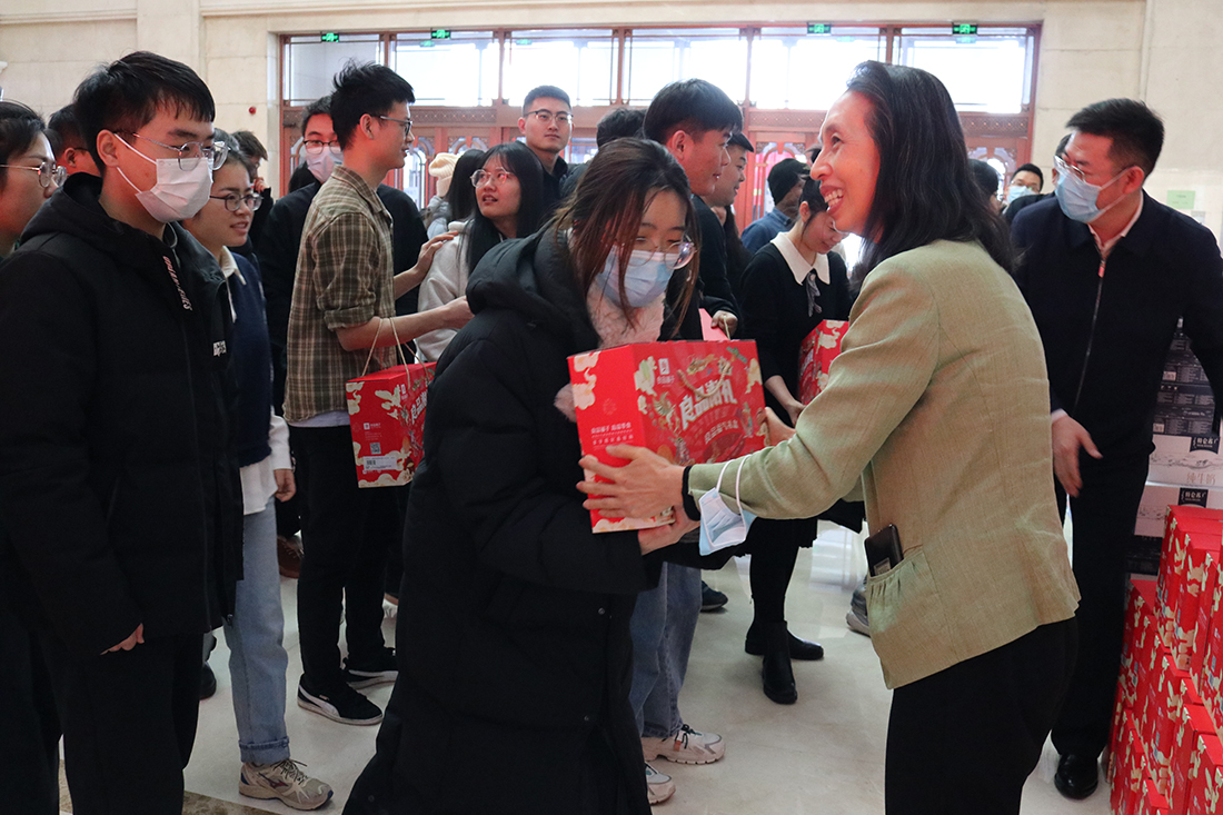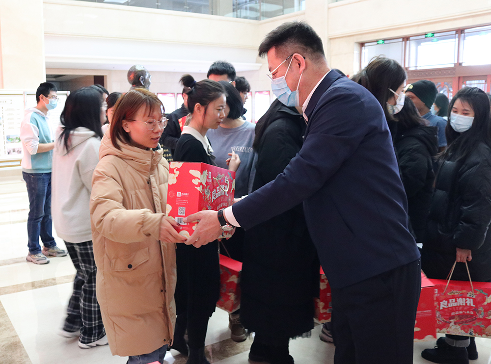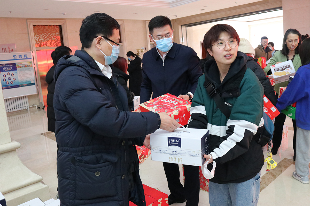 1月29日上午,哈爾濱獸醫(yī)研究所綜合樓一樓大廳喜氣洋洋、年味十足。研究所特意為60余名因疫情留所的研究生舉辦了一場 “送溫暖”活動。所長步志高、黨委書記王笑梅、副所長孫百明和黨委委員張曉鵬與學(xué)生親切交談,并為他們送上暖心的新年禮包和新春祝福。研究生培養(yǎng)處處長劉益民和管理人員參加活動。