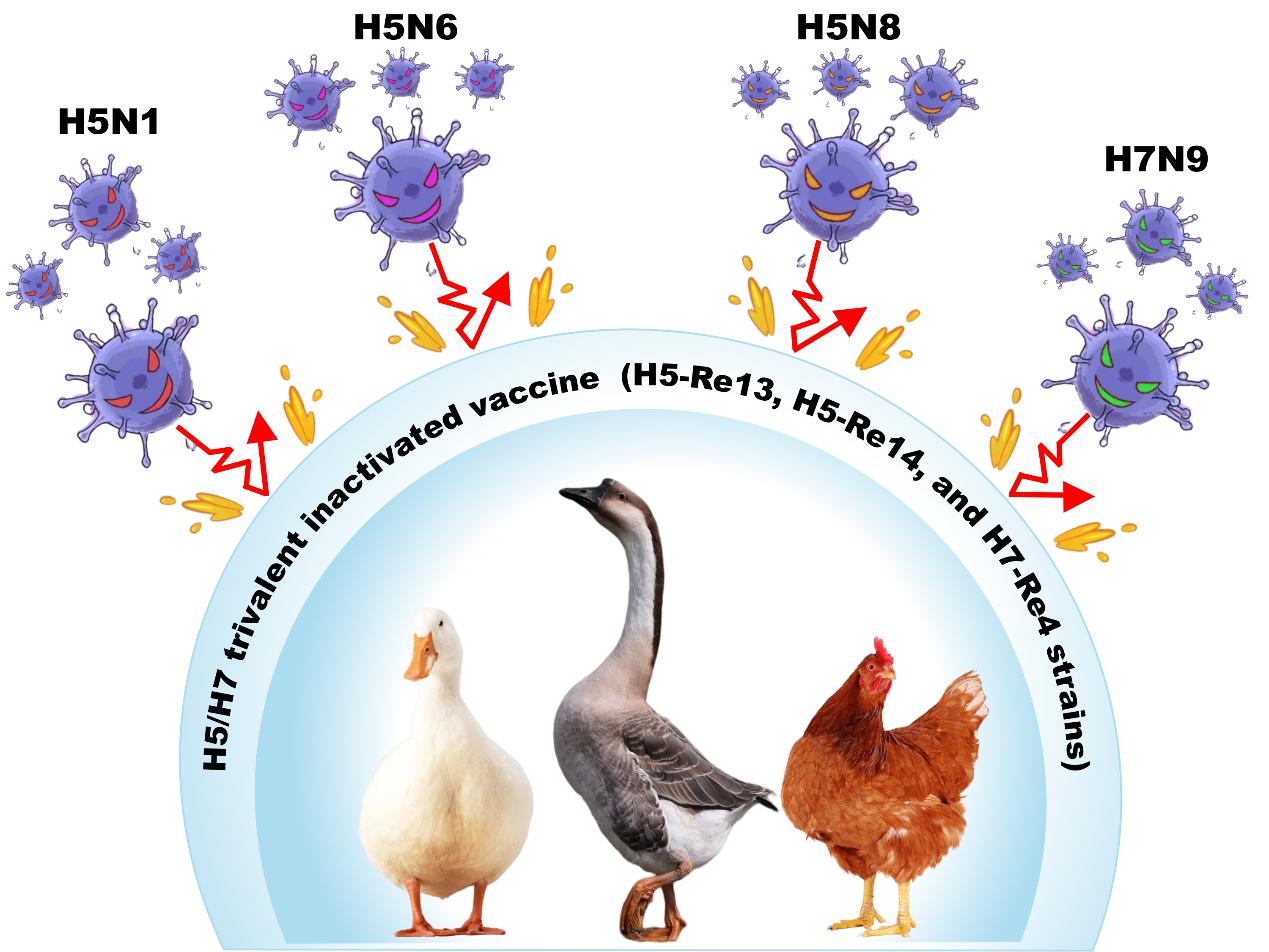 4. Zeng X, et al. (2022). Protective efficacy of an H5/H7 trivalent inactivated vaccine (H5-Re13, H5-Re14, and H7-Re4 strains) in chickens, ducks, and geese against newly detected H5N1, H5N6, H5N8, and H7N9 viruses. Journal of Integrative Agriculture. https://doi.org/10.1016/S2095-3119(22)63904-2.