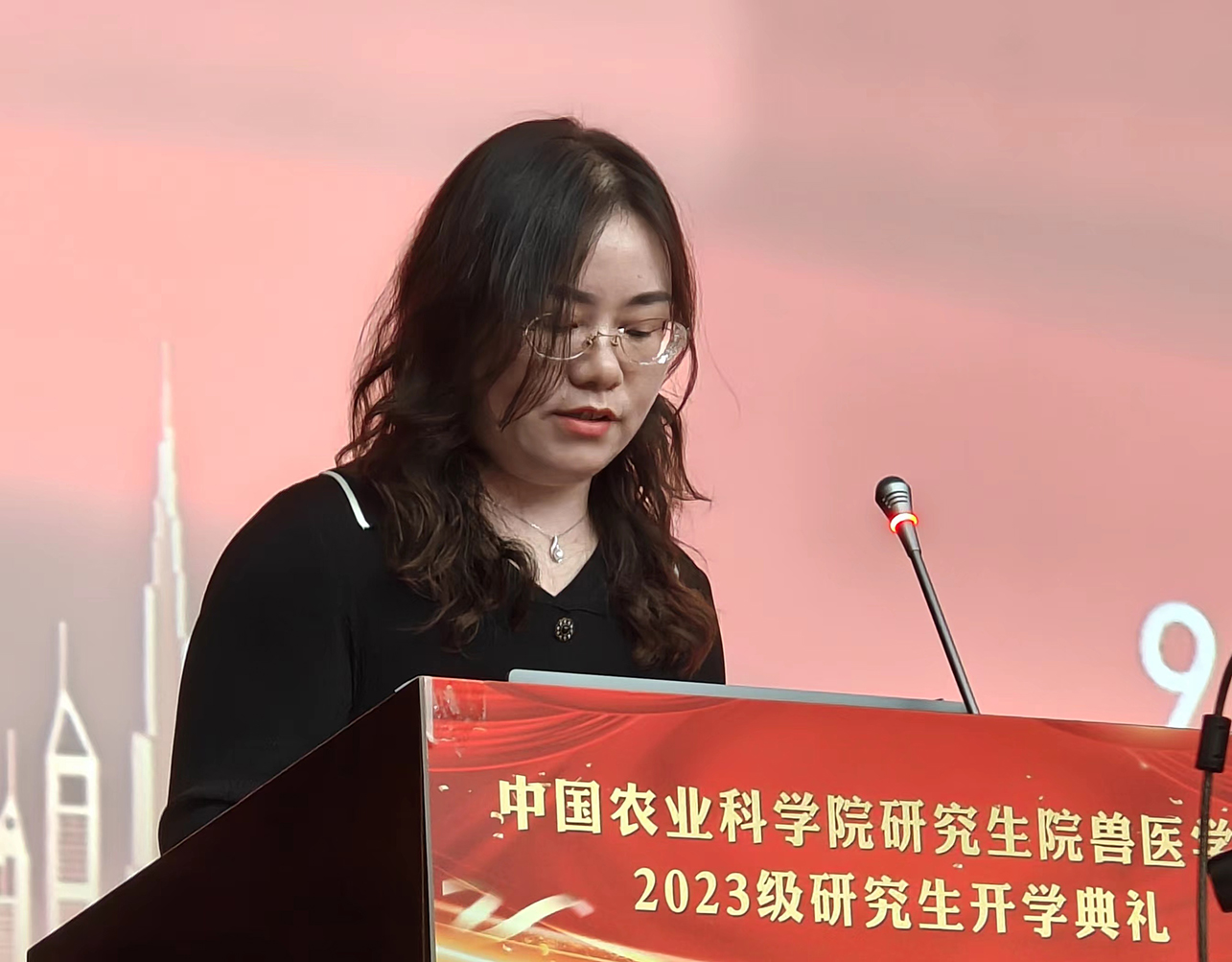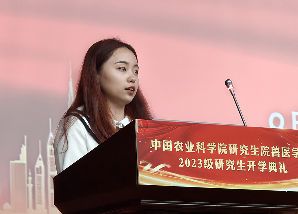 特產(chǎn)研究所白雪研究員代表獸醫(yī)學(xué)院全體導(dǎo)師發(fā)言,鼓勵同學(xué)們勇攀科學(xué)之峰、集聚創(chuàng)新之力、堅守研究之道,乘勢而上、借勢而進(jìn)、逆勢而行,以夢為馬,不負(fù)韶華。