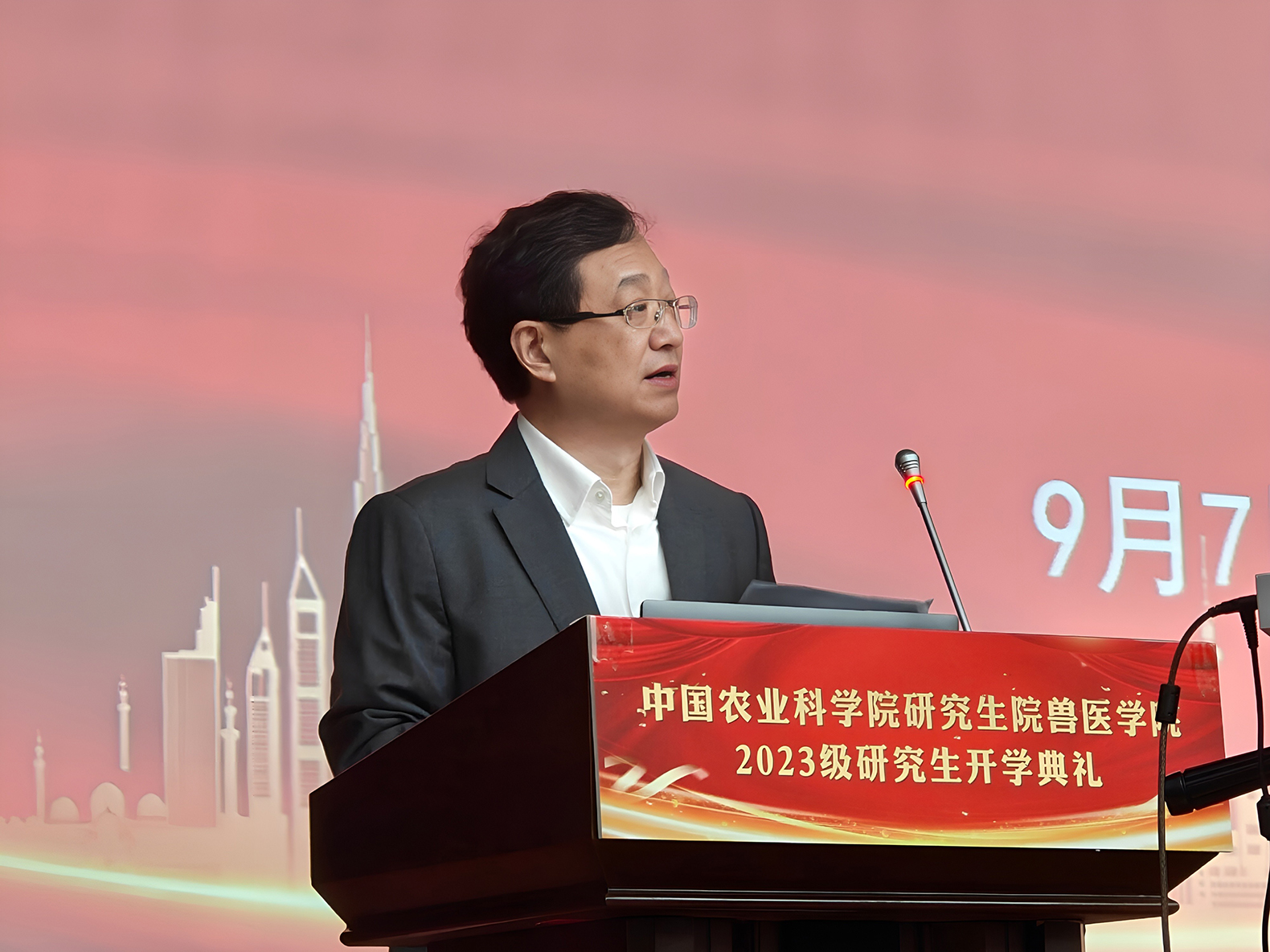 賈廣東代表研究生院全體師生員工,向剛剛邁進(jìn)中國農(nóng)業(yè)科學(xué)院的同學(xué)表示衷心祝賀和熱烈歡迎。希望同學(xué)們胸懷“國之大者”,求是創(chuàng)新,主動探索,腳踏實地,勇?lián)厝危瑵撔目蒲?,練就本領(lǐng),傳承寶貴的農(nóng)科精神,為建設(shè)教育強(qiáng)國作出新的更大貢獻(xiàn)。