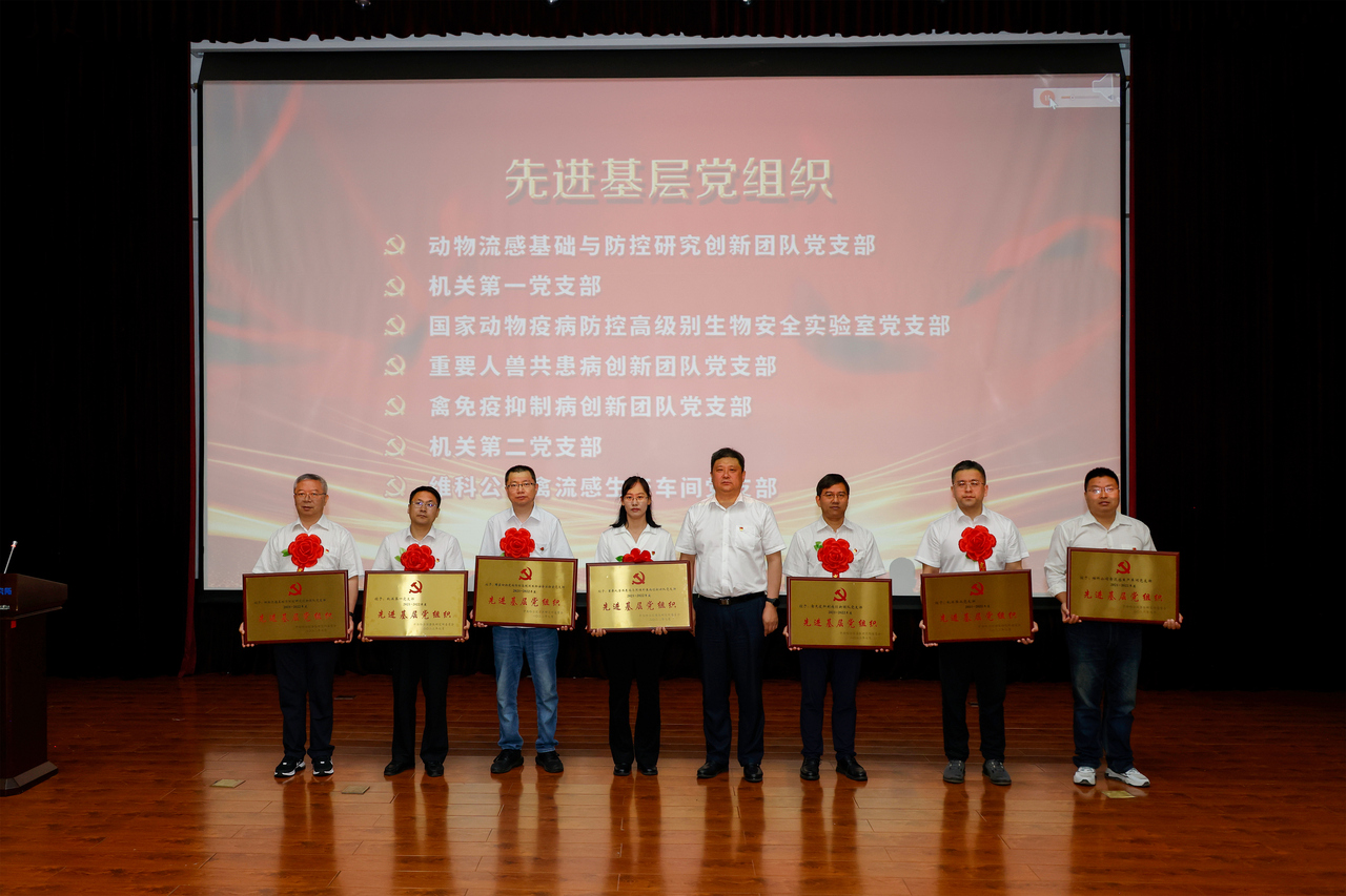 大會在雄壯的國歌聲中開始,劉勝旺宣讀了《關(guān)于表彰2021-2022年度優(yōu)秀共產(chǎn)黨員、優(yōu)秀黨務(wù)工作者和先進(jìn)基層黨組織的決定》,授予趙東明等38名同志優(yōu)秀共產(chǎn)黨員榮譽稱號,授予劉益民等11名同志優(yōu)秀黨務(wù)工作者榮譽稱號,授予動物流感基礎(chǔ)與防控研究創(chuàng)新團隊黨支部等7個黨支部先進(jìn)基層黨組織榮譽稱號。夏長友、劉勝旺、孫百明、張曉鵬為先進(jìn)集體和先進(jìn)個人頒獎。在夏長友帶領(lǐng)下,新發(fā)展黨員宣誓,集體重溫了入黨誓詞。