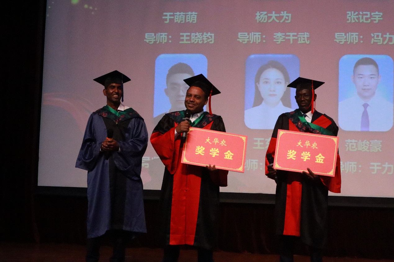畢業(yè)典禮上,頒發(fā)了“哈獸研”、“金諾診斷”、“大華農(nóng)”和“北大荒牧業(yè)”等獎助學金,所領(lǐng)導和企業(yè)代表為73名獲獎同學頒發(fā)獎學金78萬元。