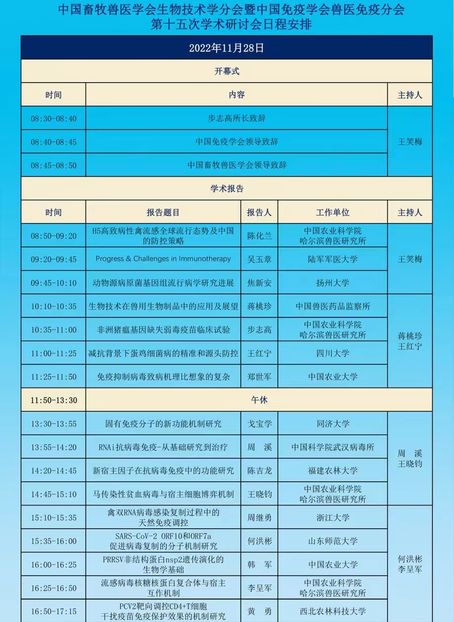 中國(guó)畜牧獸醫(yī)學(xué)會(huì)生物技術(shù)學(xué)分會(huì)暨中國(guó)免疫學(xué)會(huì)獸醫(yī)免疫分會(huì)第十五次學(xué)術(shù)研討會(huì)