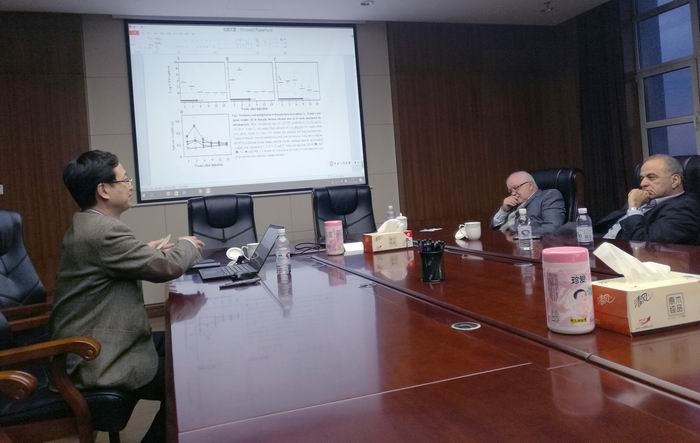 訪問期間,兩位摩洛哥專家與我所有關研究人員進行了座談。兩位專家首先介紹了我所研制的小反芻獸疫重組山羊痘病毒活載體疫苗在M.C.I. Sante Animal公司進行小反芻獸疫強毒動物攻毒保護試驗的情況,結果顯示該疫苗安全有效,令人滿意。隨后,步志高研究員介紹了M.C.I. Sante Animal公司委托我所構建的小反芻獸疫重組綿羊痘病毒(摩洛哥疫苗株)活載體疫苗的研發(fā)進展,以及在羊痘病毒載體研究方面的新突破,兩位專家對我們所取得的良好結果表示感謝,表達了繼續(xù)深入合作的意愿。此外,步志高研究員還介紹了在我所在布氏桿菌疫苗、中東呼吸綜合征(MERS)病毒疫苗等方面的研究進展。最后,雙方就小反芻獸疫、牛疙瘩皮膚病、MERS病毒、布氏桿菌病等方面的合作達成了新意向,并對未來進一步合作充滿了新的期待!(文/圖 陳偉業(yè))