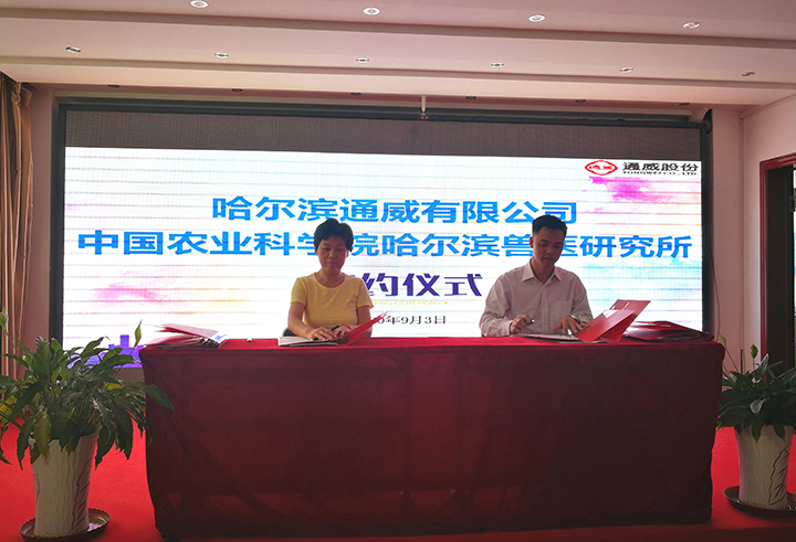 9月3日,哈獸研動(dòng)物衛(wèi)生檢測(cè)中心與哈爾濱通威飼料有限公司在黑龍江省賓西舉行了合作簽約儀式。