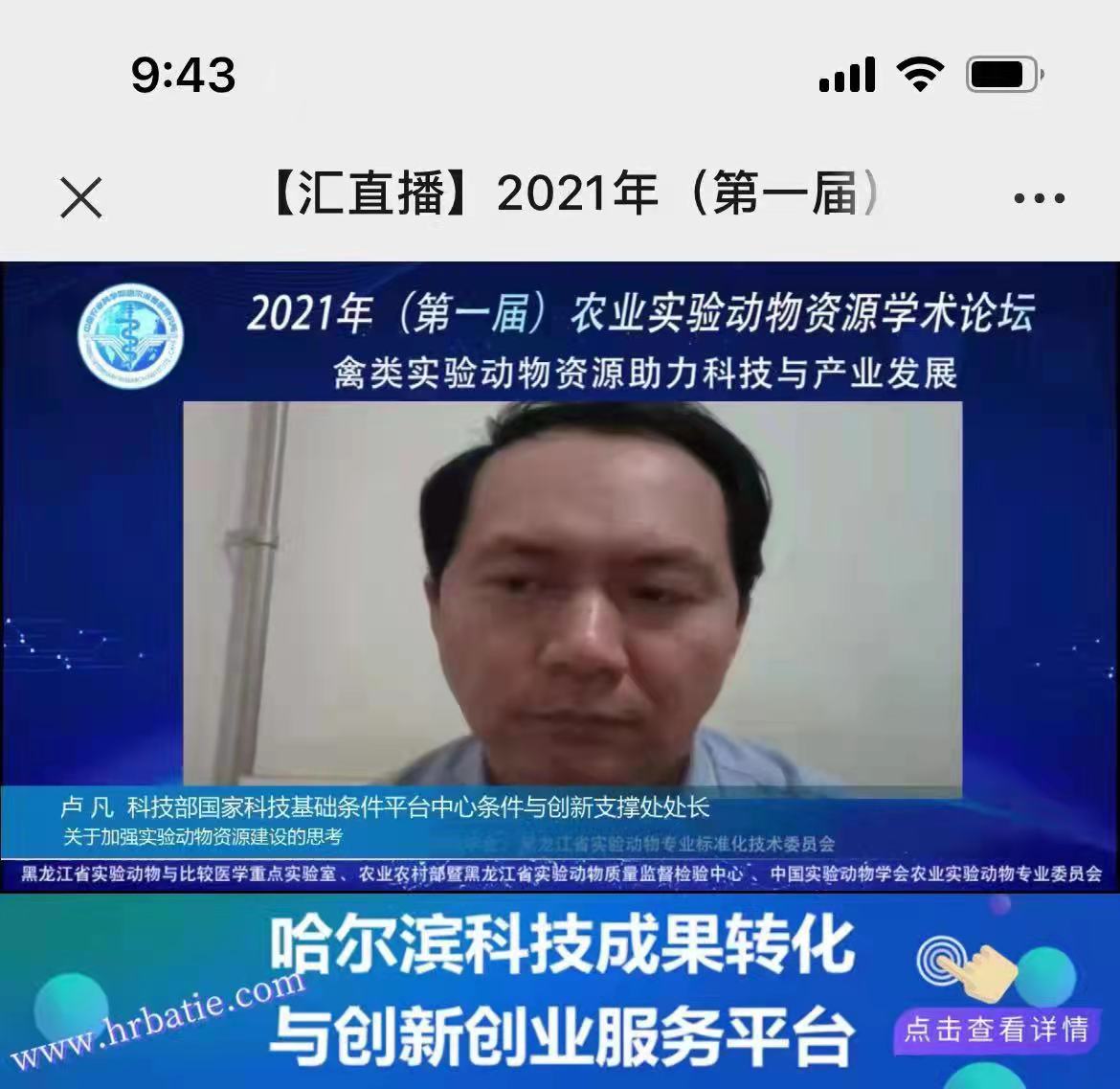 11月27-28日,2021年(第一屆)農(nóng)業(yè)實驗動物資源學(xué)術(shù)論壇在黑龍江省哈爾濱市召開。此次學(xué)術(shù)論壇由哈爾濱市科學(xué)技術(shù)局主辦,國家禽類實驗動物資源庫、黑龍江省實驗動物學(xué)會、黑龍江省實驗動物專業(yè)標準化技術(shù)委員會、黑龍江省實驗動物與比較醫(yī)學(xué)重點實驗室、農(nóng)業(yè)農(nóng)村部暨黑龍江省實驗動物質(zhì)量監(jiān)督檢驗中心、中國實驗動物學(xué)會農(nóng)業(yè)實驗動物專業(yè)委員會承辦。論壇主題是“禽類實驗動物資源助力科技與產(chǎn)業(yè)發(fā)展”。本次論壇采用線上與線下結(jié)合的方式舉行,國內(nèi)實驗動物專家、相關(guān)研究人員、禽類實驗動物管理人員及相關(guān)從業(yè)人員參加了此次論壇。中國農(nóng)業(yè)科學(xué)院哈爾濱獸醫(yī)研究所黨委副書記夏長友研究員主持開幕式,哈爾濱市科學(xué)技術(shù)局農(nóng)社處馬金龍?zhí)庨L、科學(xué)技術(shù)部國家科技基礎(chǔ)條件平臺中心條件與創(chuàng)新支撐處盧凡處長 、中國農(nóng)業(yè)科學(xué)院科學(xué)技術(shù)局平臺處劉建安處長分別致辭,向與會專家表示熱烈祝賀!