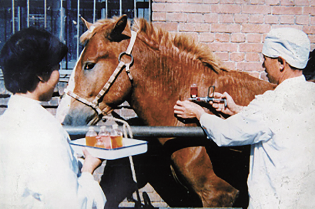 臨危受命,勇攀高峰。1948年,沈榮顯初到東北農(nóng)業(yè)部家畜防疫所(哈獸研前身),就接到了研制牛瘟疫苗、支援解放戰(zhàn)爭(zhēng)的任務(wù)。當(dāng)時(shí),東北農(nóng)村牛瘟肆虐,大批耕牛接連死亡,西部蒙古牛和本地黃牛發(fā)病后死亡率達(dá)50%,東部朝鮮病牛死亡率高達(dá)100%。全國(guó)疫情嚴(yán)重,四處告急。沈榮顯和他的團(tuán)隊(duì)通過(guò)不斷的嘗試,于1949年研制成功牛體反應(yīng)疫苗;1951年,又研制成功了山羊化兔化牛瘟疫苗;到1953年,這場(chǎng)席卷東北華北的牛瘟終于被消滅了。然而,新的問(wèn)題又出現(xiàn)了,這種牛瘟疫苗毒力比較強(qiáng),為此,沈榮顯又投入到緊張的馴化試驗(yàn)。1953 年 3 月,沈榮顯受農(nóng)業(yè)部派遣,隨免疫隊(duì)登上了青藏高原,向牦牛牛瘟宣戰(zhàn)。對(duì)于解放初期的藏區(qū)來(lái)說(shuō),牦牛是最主要的交通工具,牛瘟疫情給牧區(qū)人民帶來(lái)嚴(yán)重的經(jīng)濟(jì)損失和生活困擾。由于交通的極度不便利,根本無(wú)法將研制好的疫苗運(yùn)輸至藏牧區(qū),才過(guò)而立之年的沈榮顯與免疫隊(duì)成員們臨危不亂,就在簡(jiǎn)易的帳篷里利用當(dāng)?shù)赜邢薜馁Y源和設(shè)備,潛心研究,改進(jìn)生產(chǎn)工藝,研制出適合牦牛的牛瘟疫苗。