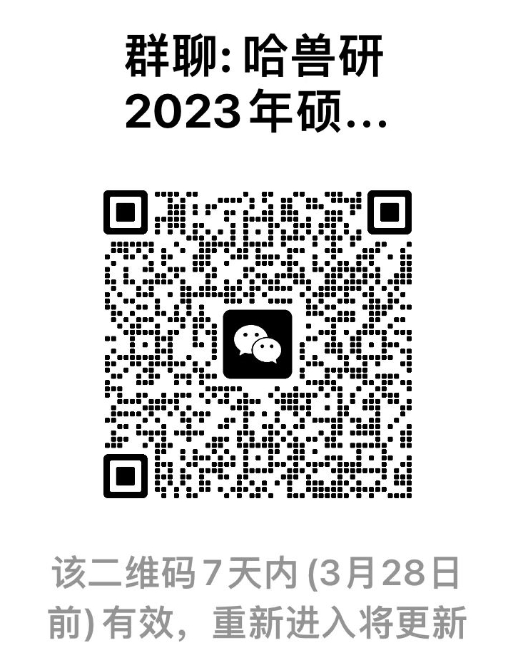 3、所有參加復試的考生,請于3月23日10:00點前掃描哈獸研復試群二維碼(在本頁右下方)進入復試群,回復確認參加復試,過期沒有確認的,視為自愿放棄復試資格。