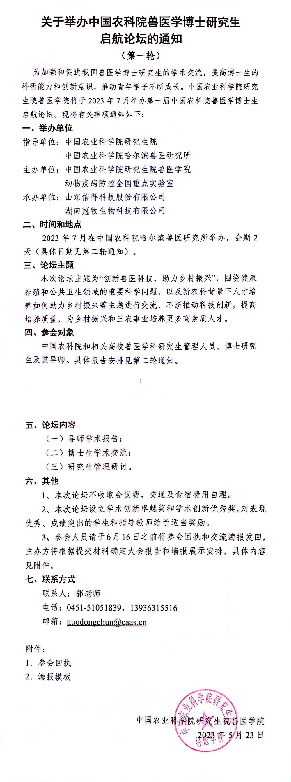 關于舉辦中國農科院獸醫(yī)學博士研究生啟航論壇的通知 (第一輪)