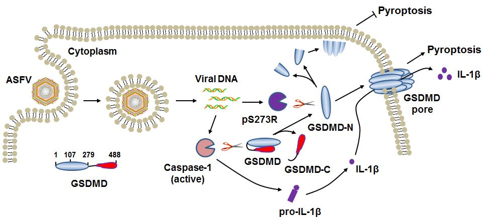 4. 發(fā)現(xiàn)了非洲豬瘟病毒pS273R蛋白抑制細胞焦亡的機制